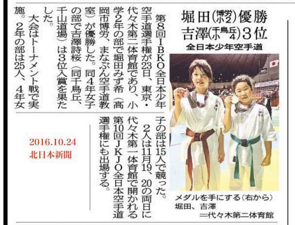 2014年1月26日東京代々木体育館で開催された「第7回JKJO全日本ジュニア空手道選手権大会」にジュニア女子2名が初参戦。
